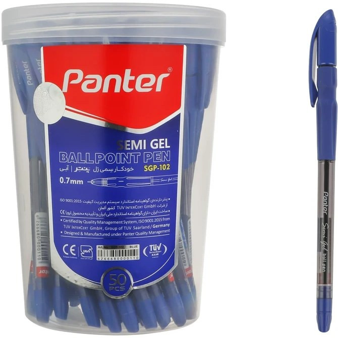 خودکار «پنتر» مدل «Semi Gel» با قطر 0.7 میلیمتر، یک خودکار ساچمهای و بسیار روان است که بدنهای پلاستیکی دارد. جوهر این خودکار دربرابر نور مقاوم است و کمرنگ نمیشود. خودکار سمیژل مناسب افرادی است که برای امور روزمرهی خود، به خودکاری روان و بادوام نیازمندند. خوکار عضو همیشگی کیف یا جیب اغلب ماست.